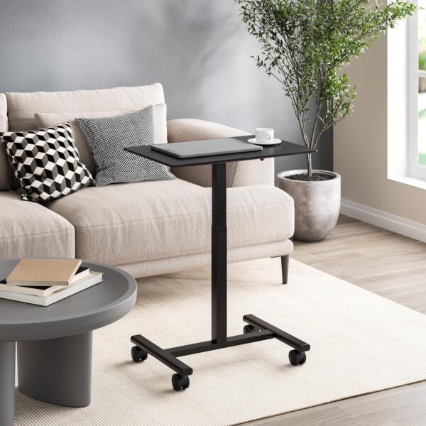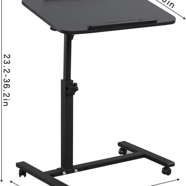 Foldable Mobile Standing Desk, 27 Inch Small Rolling Laptop Cart Height Adjustment, 90° Tiltable Bedside Table, No Assembly Needed Portable Computer Workstation, Black