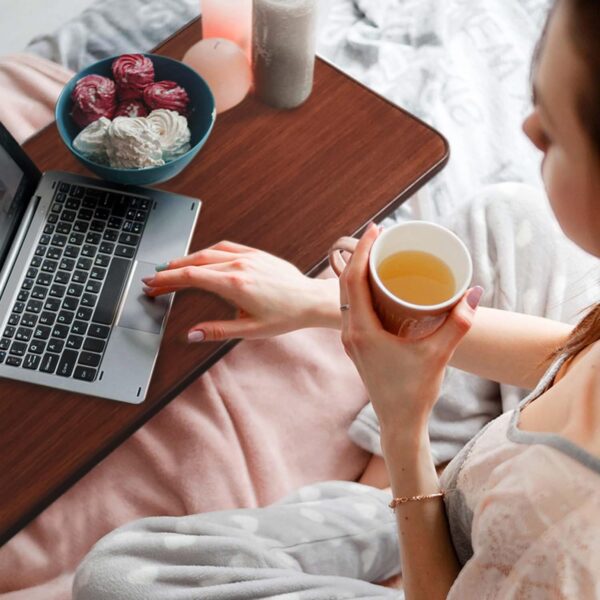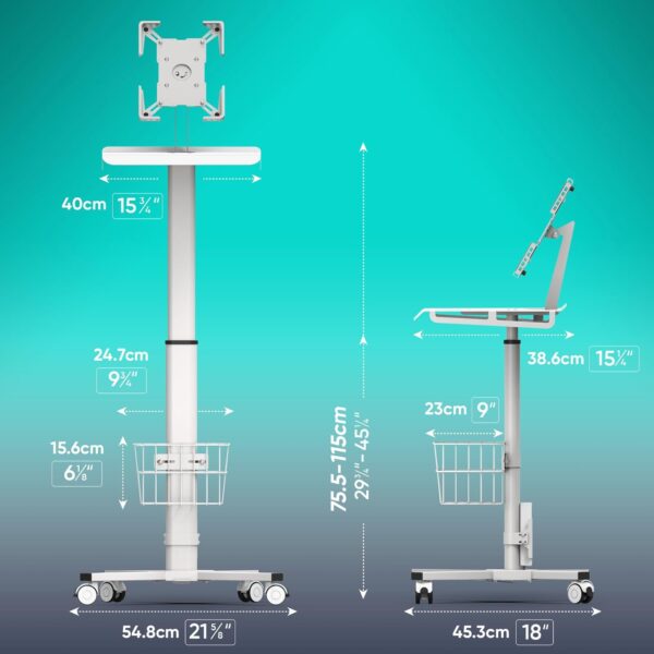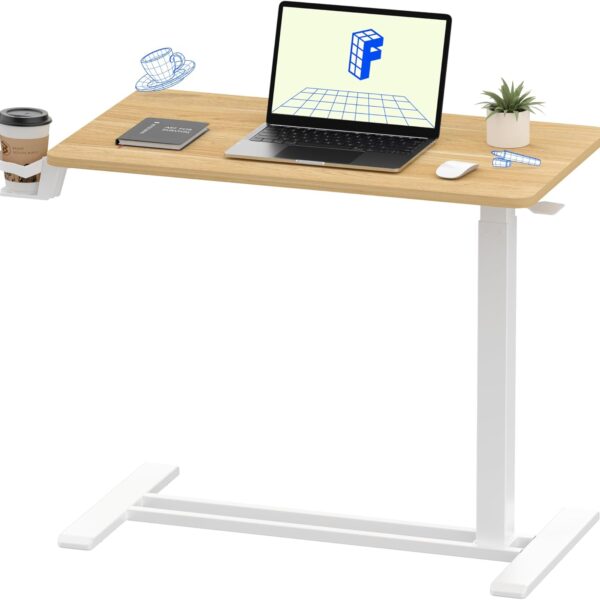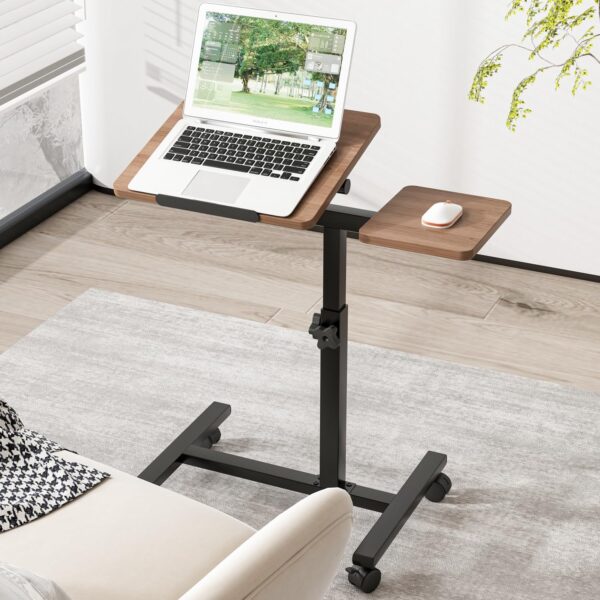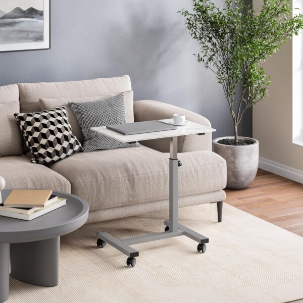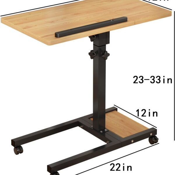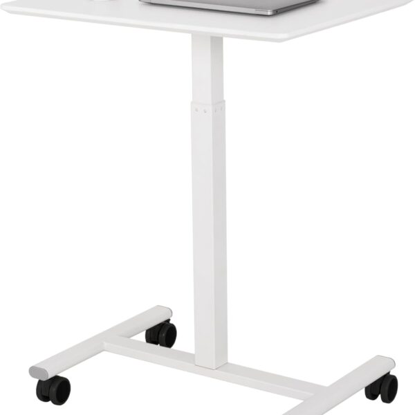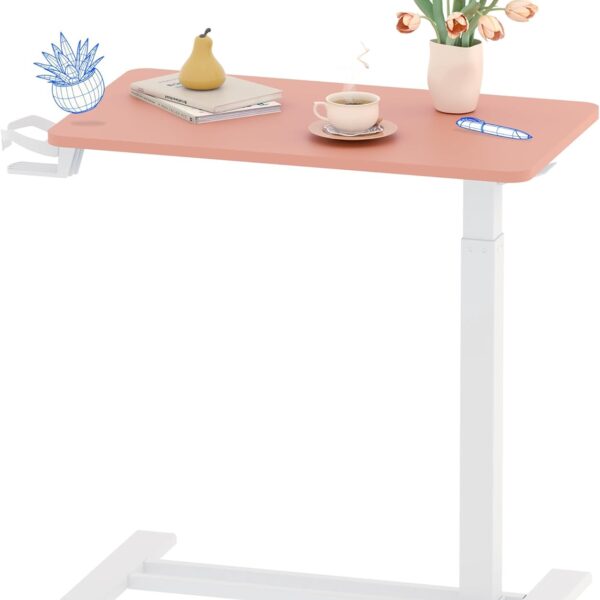 H7 Adjustable Overbed Bedside Table with Wheels Pneumatic Mobile Standing Desk Laptop Desk Rolling Computer Cart Movable Overbed Table Hospital Home Use(27.6″ W x 15.7″ D, Pink)
