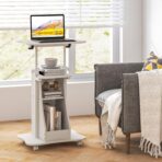 Mobile Lectern Podium, Height Adjustable Podium Stand, Standing Desk Sit-to-Stand Desk, Rolling Desk Cart Stand Laptop Desk Cart with Swivel Top Movable Wheels & Storage