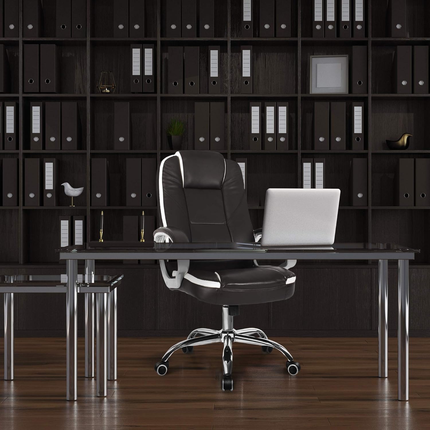 Office Chair Computer Desk Chair Gaming – Ergonomic High Back Cushion Lumbar Support with Wheels Comfortable Brown Leather Racing Seat Adjustable Swivel Rolling Home Executive