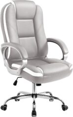 Office Chair Computer Desk Chair Gaming – Ergonomic High Back Cushion Lumbar Support with Wheels Comfortable Grey Leather Racing Seat Adjustable Swivel Rolling Home Executive